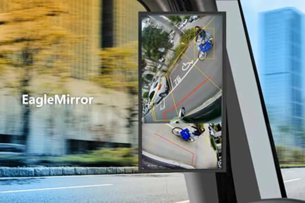 EagleMirror is the world’s first system that integrates Blind Spot Detection System into digital side mirrors. It is designed for large commercial vehicles to protect vulnerable road users and improve driving safety. With state-of-the-art vision-AI technology, EagleMirror not only combines external cameras and in-cabin digital side mirrors to provide drivers a clearer and wider vision, but also specifically identify vulnerable road users and alert the driver in real time on the screen of digital side mirrors when a pedestrian or cyclist enters dangerous blind spot areas. EagleMirror is a perfect solution for saving lives in mixed-traffic situations on urban roads.