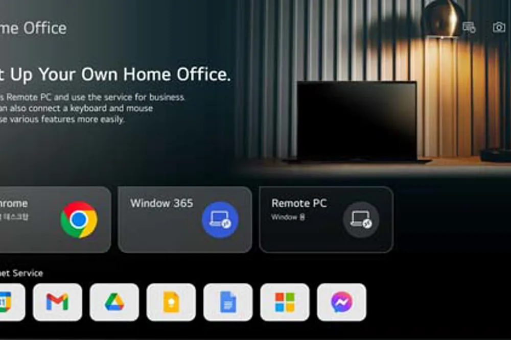 LG TV's Home Office gathers several productivity-enhancing services in one place to give users the unique opportunity to work on their LG TV. Users can connect their PC to an LG TV remotely or via the cloud, which the TV will remember, enabling instant access for future connections with the Easy Connect profile feature. Additionally, major online related browsers and application bookmarks are preinstalled, making it easy for users to quickly start working. Settings are also available for accessories such as keyboards, mouse, and cameras to optimizing productivity.