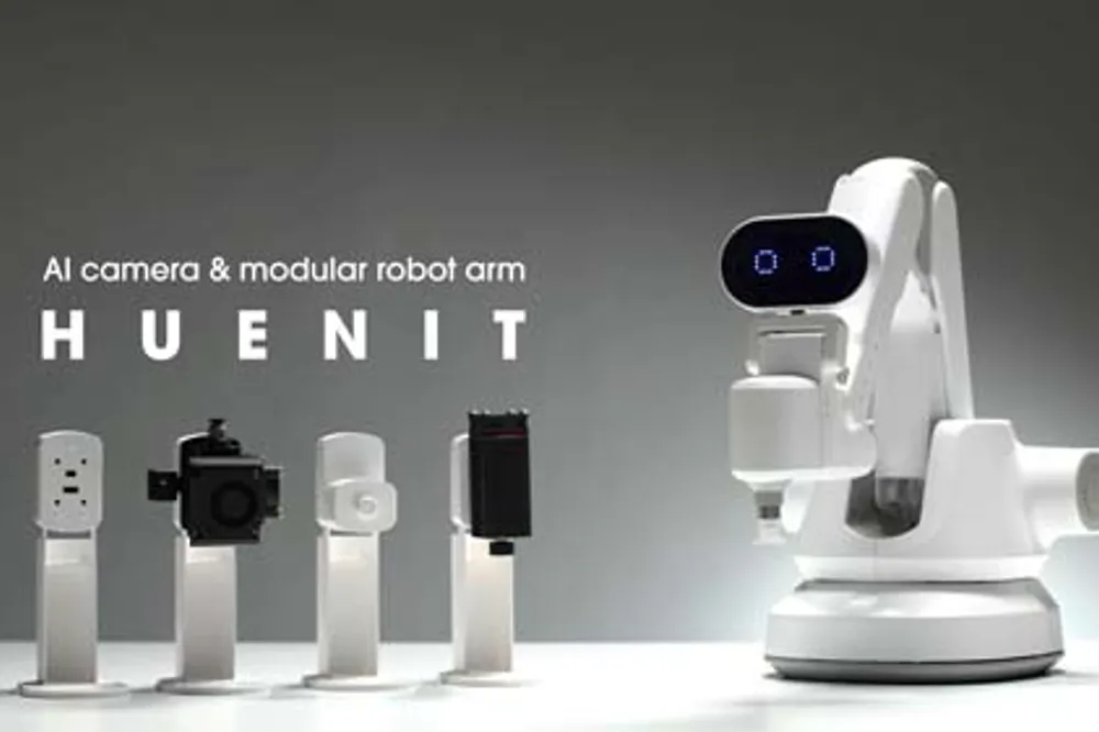 HUENIT is AI modular robot arm for Maker and STEAM education which is an easy-to-use, multi-functional and high-pricision. HUENIT supports various modules like AI vision, laser engraving, 3D printing, robotic gripper, writing and drawing functions, and also has a customizable module. HUENIT supports various development environments such as visual programming (block coding based on Scratch), Python, and Arduino (C++) programming. In addition, you can learn and experience the entire process of artificial intelligence training using Tensorflow. (AI accelerator(NPU) is built into the HUENIT camera module) All functions can be easily learned and utilized by beginners through the HUENIT SW platform.