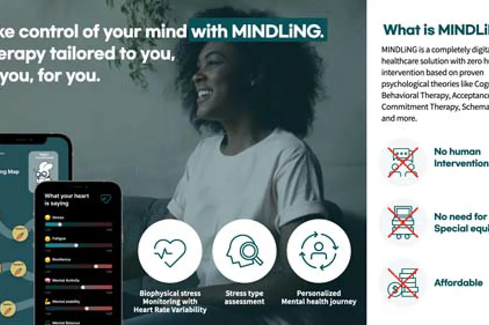 MINDLiNG emulates the in-person therapy process on an online platform so that mental care can be done on one’s own without therapists or psychiatrists, drastically lowering physical/psychological/economical barriers to care. MINDLiNG consists of three key steps. First, it measures user's stress and resilience based on Heart Rate Variability detected from your finger by the smartphone camera. Second, it provides psychological assessments to identify the user’s stress patterns. Lastly, based on these biophysical signals and stress patterns, MINDLiNG recommends a customized, all-digital therapy program for each user consisting of proven therapy practices (E.g. schema therapy, CBT, ACT), with zero human intervention.