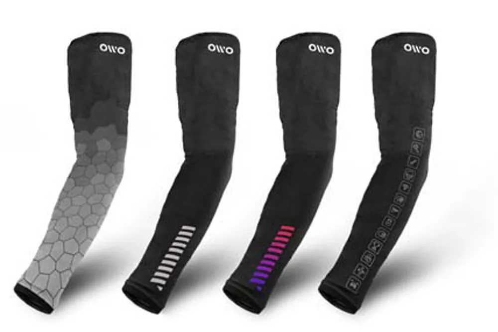 Our mission is to turn your virtual world into reality. Using our own Sensations Technology, OWO has developed a new product that comes in the shape of long sleeves that cover the full arm. With them, users can interact with the environment. The OWO Haptic Sleeves allow users to feel actions such as arm tensing when shooting arrows, picking up objects or gun recoil.