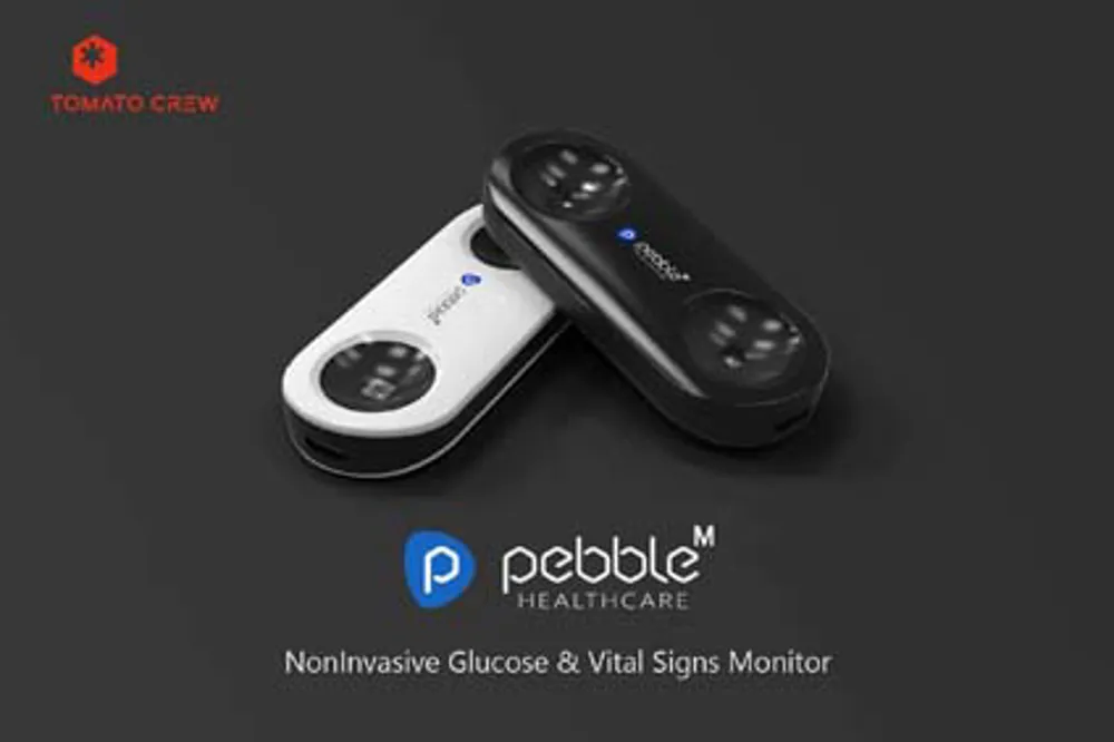 Pebble-M is a noninvasive glucose and vital signs monitor. This small portable composite device has many features and is capable of measuring multiple vital signs such as heartrate, oxygen level (SpO2), skin temperature, electrocardiogram (ECG) and blood pressure. It can also check the blood glucose noninvasively using a near-infrared photosensor instead of having the user painfully prick his/her finger to check the blood. The measured data can be displayed on our mobile phone application, stored on our cloud service platform, and shared with clinicians. The key point being that Pebble-M provides a more user-friendly and convenient method for healthcare.
