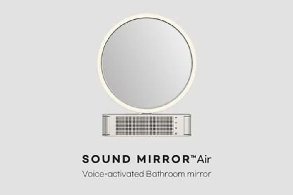 The SOUND MIRROR™ Air is the world's 1st form factor and voice-activated bathroom mirror that integrates an artificial intelligent voice assistant with a wall-mounted magnifying mirror, adjustable light, speaker, and IPX7-rated waterproof for a bathroom environment.