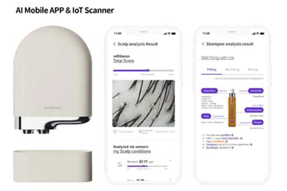 WithBecon is the most innovative digital healthcare solution that analyzes the scalp and recommends the best matching treatments for hair loss and scalp conditions. WithBecon is composed of an IoT scalp scanner with a dozen of sensors and LEDs, as well as mobile app with deep learning algorithms so it helps users to prevent hair losses and cure scalp problem.