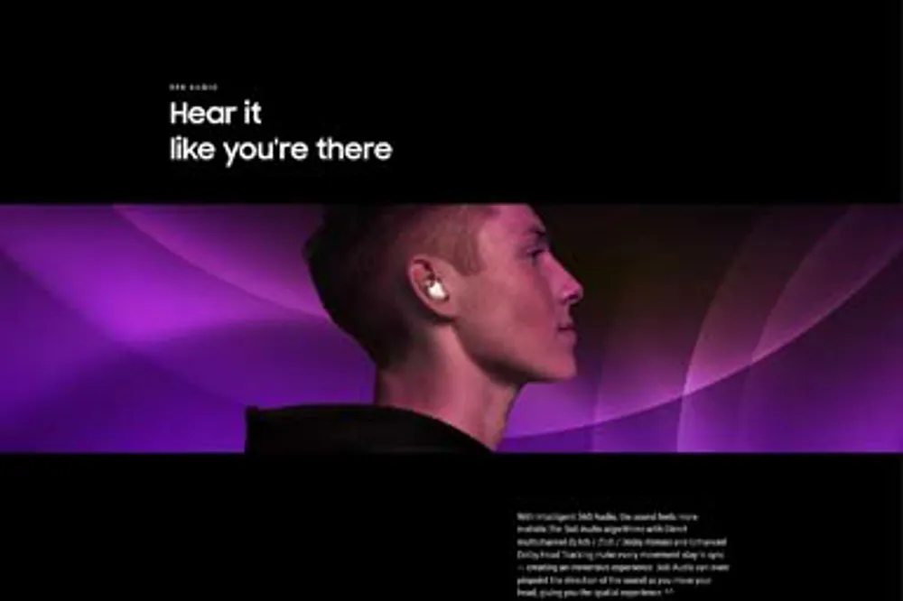 360 Audio for TV is Samsung’s latest innovation in the TV audio front, seamlessly connecting Samsung Buds to deliver an immersive spatial audio experience. Drawing from consumer insights, 360 Audio for TV is made for those seeking a three-dimensional sound, especially when watching movies and playing games where immersive audio is central to the experience. The feature offers a multi-channel surround effect with Head Tracking option, allowing users to perceive sound directionally as they move their heads. Powered by Samsung Scalable Codec (SSC), 360 Audio provides ultra-low latency and real-time processing for an unparalleled TV audio experience.
