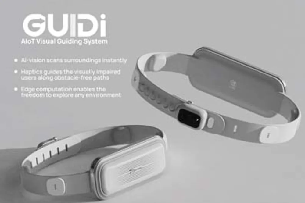 GUIDi is an AI smart belt empowering the visually impaired by implementing MEMS and AI technology to wearable devices. We help users achieve their personal and highly intelligent navigation system independent of the internet or GPS. The device works with dual wide-angle cameras, a customized edge AI module with sensor integration, a haptic navigation system, and voice command. The accompanying mobile app allows convenience by featuring voice command support and over-the-air updates, ensuring continuous improvement and cutting-edge functionality. Goodbye to limitations and hello to freedom as GUIDi empowers the visually impaired with a seamless navigation experience in any environment.