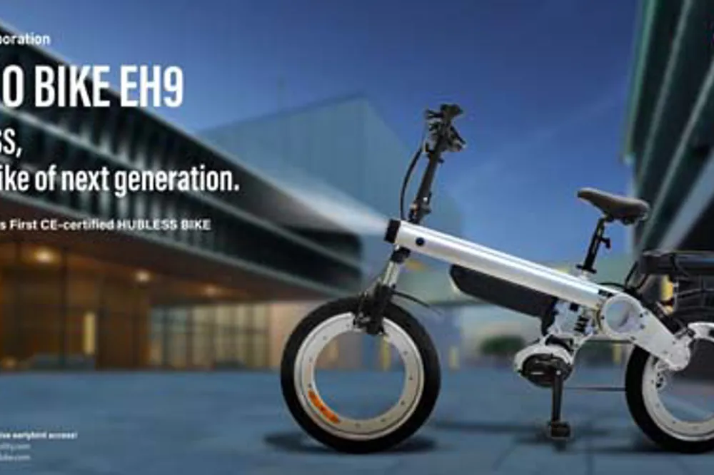 Korea Mobility's KOMO Hubless electric bicycle is a bicycle with a unique and future-oriented design with a structure without hubs or spokes, which is the core of the bicycle, by applying the design conceived by the hula hoop to the bicycle structure. The frame structure applies the fitting and bolting method conceived in the architectural structure to the bicycle frame structure, showing three times more strength than welding, and strengthening the durability of the frame to enable safe driving. The hubless space has multi-purpose business utilization such as billboards, bag storage, and helmet storage