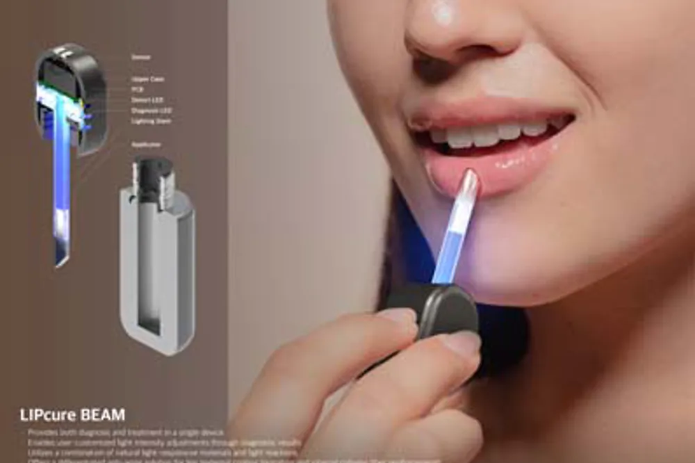 LIPCURE BEAM is the world's first beauty tech that simultaneously offers personalized lip makeup and care. This provides immediate diagnosis and treatment within one product. Featuring an integrated sensor that diagnoses individual lip conditions, this device affords tailored lip care based on real-time sensing results. Our proprietary blend of light-responsive materials has been precisely engineered to react to specialized light spectrum. Upon exposure, our product fortify the collagen fibers within the lips and establish moisture barriers on the surface. Customers enjoy unique experiences of care and makeup through this advanced system, each meticulously customized to their needs.