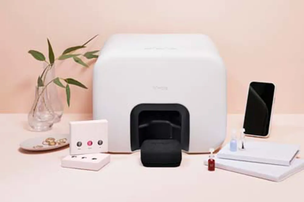 Nimble uses complex robotics + advanced AI to scan, paint, and dry your nails in one-game changing device. 270° nail-scanning technology maps nails while 20+ algorithms calculate polish dosing. A fine-motor robotic arm mimics human motion on 5 axes to paint; airflow dries every coat. Ergonomics ensure comfort.