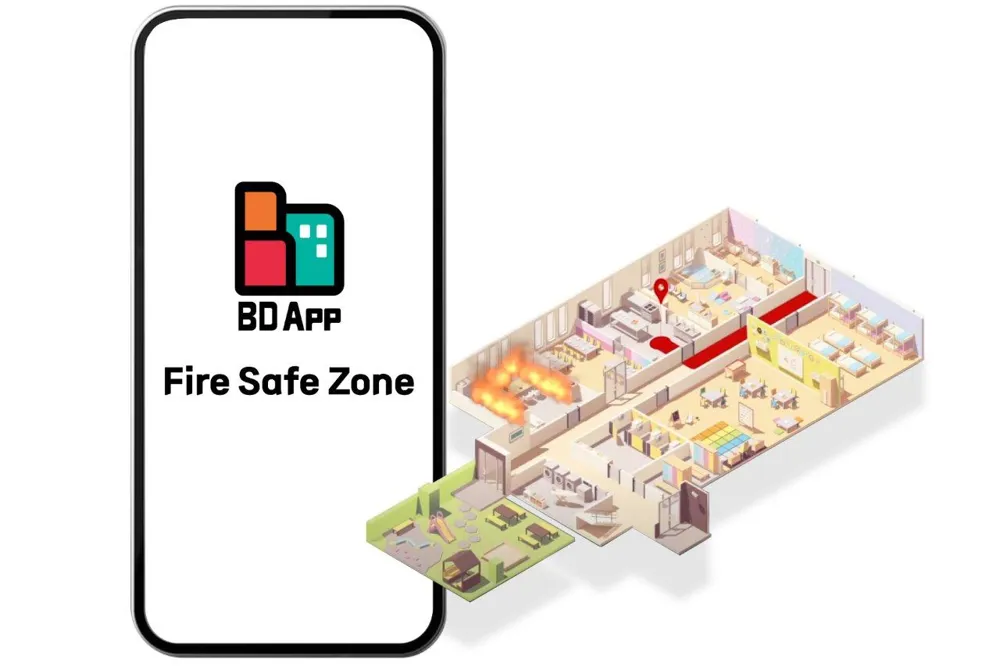 BDApp Fire Safe Zone is a service that notifies the location of a fire and the evacuation route on your phone with your existing facilities.