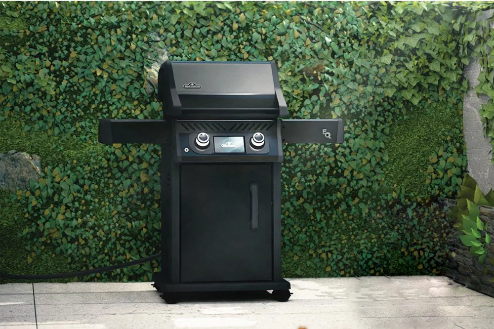 This full-sized electric grill delivers up to 750°F using 220V-240V power, offering an eco-friendly, low-cost operation without propane or natural gas. It reduces your impact on the planet without compromising cooking performance. With a 365-square-inch cooking area, it’s perfect for balconies and places with gas restrictions. Features include dual control knobs, a 7” touchscreen LCD, Wi-Fi®, Bluetooth®, and three cooking modes: Grill, Oven, and Smoke. It also boasts Auto Clean Mode, Auto Shut Off, Auto Grease Fire Detection Warning, an integrated woodchip smoker box, meat probes, and a USB fast charger for added convenience.