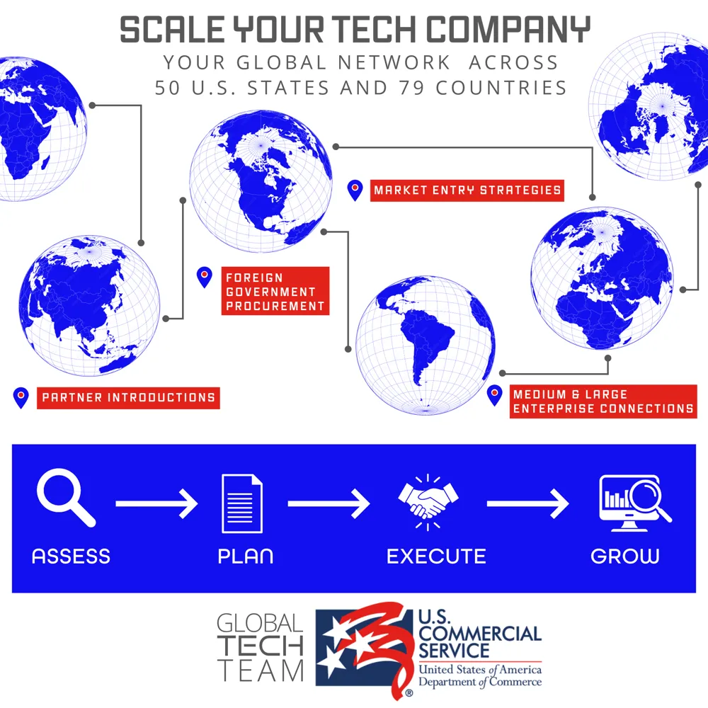 The U.S. Commercial Service U.S. tech companies with international sales by connecting you with vetted buyers and distributors worldwide. Our trade experts at U.S. embassies and consulates offer customized market research, qualified business introductions, and in-market support to help your tech company succeed globally. Find a U.S. Commercial Service office near you here.