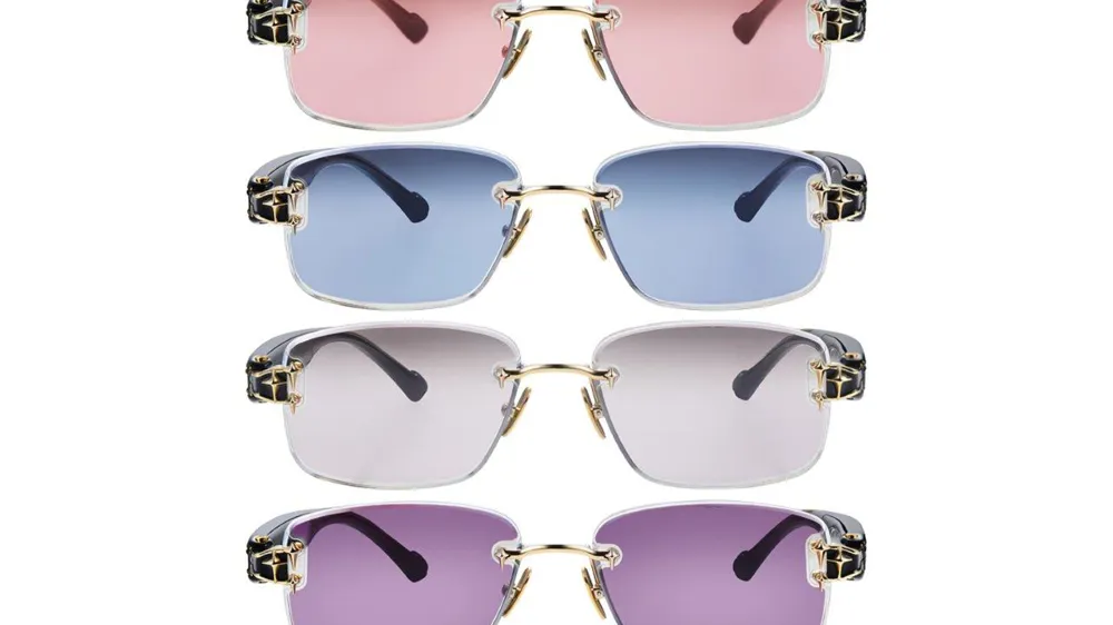 Alt text: A woman with bright blonde hair in a bright neon turtle neck with bright neon makeup confidently against a vibrant, abstract background with flowing shapes in blue, yellow, green and white.